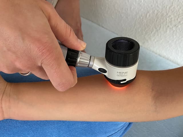 Die Hautkrebsvorsorge war sehr gründlich. Jedes Muttermal wurde mit dem Dermatoskop untersucht.
